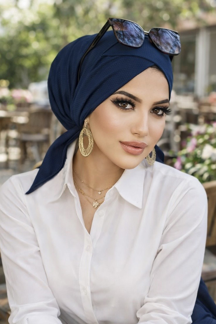 Lacivert Çapraz Bone İle Saatlerce Şal Bağlama Derdi Bitti