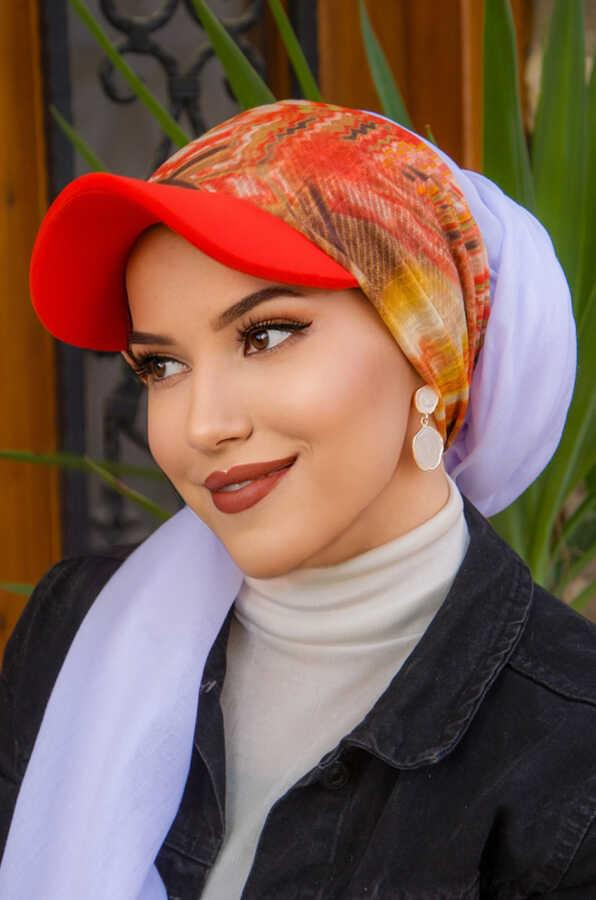 Turuncu Karma Desen Bone Bant - Bağcıklı