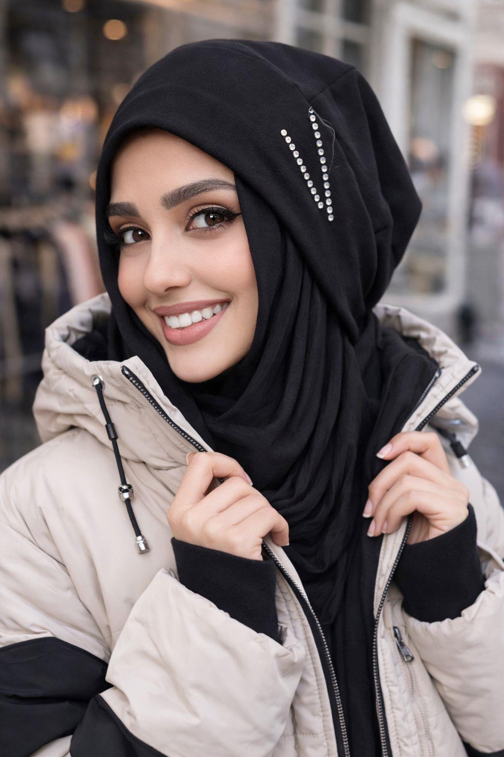 Siyah Taşlı Tesettür Bere