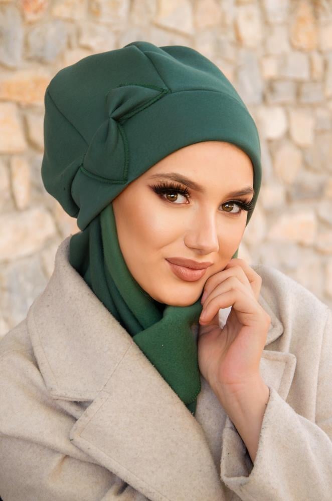 Zümrüt Yeşili Fiyonklu Tesettür Bere